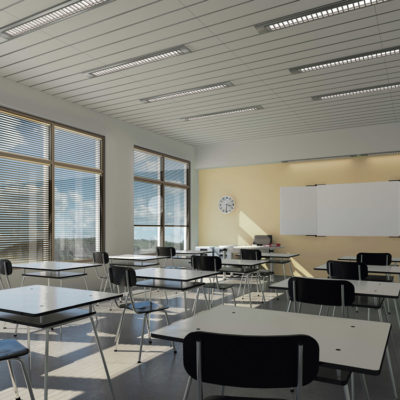 Aluminiumsysteme erweisen sich auch in Räumen als besonders nützlich, in denen eine teilweise oder vollständige Verdunkelung erforderlich ist. Hier kommt das Light Less System zum Einsatz. Das perforierte Aluminiumband mit nicht sichtbaren Löchern (im geschlossenen Zustand) eliminiert Lichtstreifen und Lichtreflexe, selbst an sonnigen Tagen.